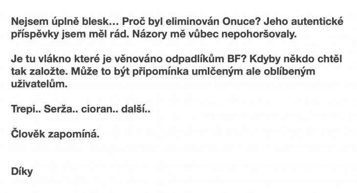Profil Onuce smazán fakt! Asi nebyl dlouho v příspěvcích aktivní.