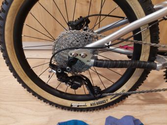 Konecne hotovo a pripraveno k vanocum. Snazil jsem se odlehcit hmotnost. Myslim, ze jsem stahl 0.5 – 0.7kg, ale stale je to hodne a vazi vice nez muj gravel. Postupem casu si cim dal vice nejsem jist, zda jsem udelal dobre s vyberem kola, ale uvidime. Ted uz s tim nic neudelam.