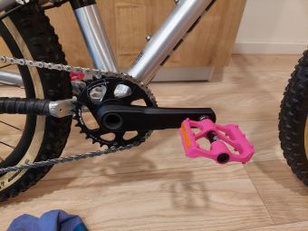 Kazdopadne velky fail jsou montazni body pro kosik. Do ramu se nic nevejde. Zkousel jsem fidlock s 450ml lahvi nebo kosik s bocnim nasouvanim a 450ml lahev. Ani jedno tam nejde. Nevim proc tam ty uchyty udelali. Dceri jsem slibil, ze bude mit na kole lahev a nebude :-(.