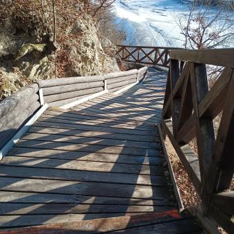 To jsou ty naše ,,schody,,u Prýglu.Před instalací dřevěné lávky včetně schodů ve svahu nad vodou tady byla jen ,,kozí stezka,,která byla pro cyklisty velmi atraktivní.