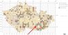 Hledala jsem, kde se ondatra vyskytuje a u nás (viz šipka na obrázku) se uvádí výskyt pořád. Měla jsem se jí líp podívat na ocas, na té fotce to moc nepoznám :-(