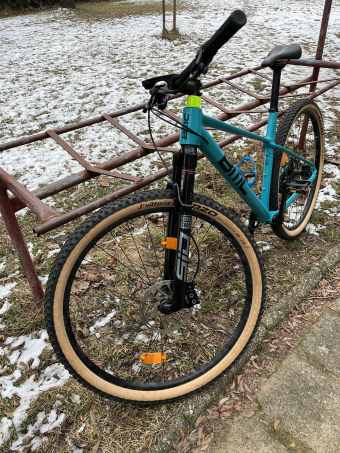 Zakoupeno manzelce v bikeru na podzim 2022, letos v lednu upgrade vidlice, brzd, vymena komplet sady. Puvodne tam byla RS Judy, nejake brzdy od sramu co nebrzdili a kombinace sady sram NX/SX. Nove komponenty zakoupene na bazaru jako funglofky za hodne slusne penize.