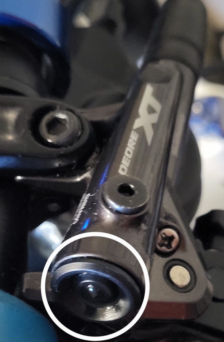 Zjistil jsem ,že mi u brzdové páky BL-M8100 uniká olej na místě označeném v bílém kroužku.