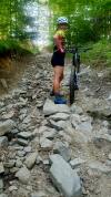 Sjížděli jsme i horší úseky než na fotce, směrem dolů bohužel za jízdy fotit nešlo :-) Ráfky, kliky, rámy, i nohy dobité od volného kamení, pláště přežily vše.