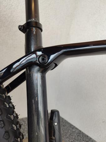 Tohle kolo jsem již jedno měl, v listopadu 2025 jsem měl nevinně vypadající pád (smyk na dřevěné lávce a pád do potoka), kdy jsem normálně dojel domů a na kole pak párkrát ještě vyjel, ale po umytí zjistil, že je prasklina na rámu v dolním místě sedlové trubky. Zřejmě kolo při pádu dostalo nějakou ránu od kamene.