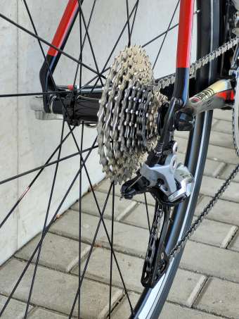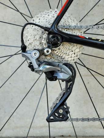 Kolo od bráchy, super stav, najeto 33000km. Uvedená hmotnost je bez veškerého navěšeného příslušenství – váženo. V době hydraulických kotoučů a elektrického řazení je to už trochu retro, ale kolo je lehké, tuhé a jde za pedálem. Karbonové ráfky nezvažuji. Pohodlí lepší jak na ocelovém Kovaříku. Brzdy skvělé, řazení rychlé. Kliky jsou nezvykle tuhé. Převody nové a zvolené tak, aby jsem se vyškrábal i do strmých kopců na horách :-)
