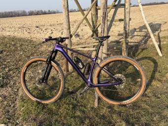 Během uplynulého roku jsem na Kvajronu vyměnil prakticky všechno kromě brzd a ty mi nakonec přinesl Santa Ježíšek. Měl jsem ale dilema, jestli je nahodit, a nebo se ještě předtím poohlédnout po karbonovém rámu a tím evoluci hardtailu završit. Jelikož zlí jazykové tvrdili, že tady po předchozí vládě zůstala „Fyjalova drahota“, a nechtěl jsem do toho finančně moc zahučet, otevřel jsem jako správný Čech slevový leták Aliho hypermarketu, kde soudruzi samozřejmě pořádali povánoční výprodeje. Padla mi do oka kopie Orbey Alma, která ale na reálných fotkách uživatelů byla hnusná a potom kopie Scotta Scale, která se tu už na fóru vyskytla, což jí lehce přidalo na důvěryhodnosti. Volba tedy padla na Scotta a protože cena byla příznivá, připlatil jsem ještě za fialovýho chameleona. Napřed se 14 dní nic nedělo, ale pak přišel update, že je zásilka na cestě a cca po měsíci od objednávky byl rám doma. Zpracování bylo v pohodě, nebylo třeba nic brousit, akorát zadní kotouč škrtal o vnitřek třmenu, ale to spravilo pár podložek. Protože jsem měkkej a nebudu přece jezdit v zimě, odhodlal jsem se k testovací jízdě až dnes. Jízdu hodnotím jako úspěšnou, přežil jsem, nikde nic neprasklo a přišlo mi, že se mi jede líp do kopce, ale to může být placebo efekt z nového kola a bude třeba to dále sledovat. Kolu zdar.