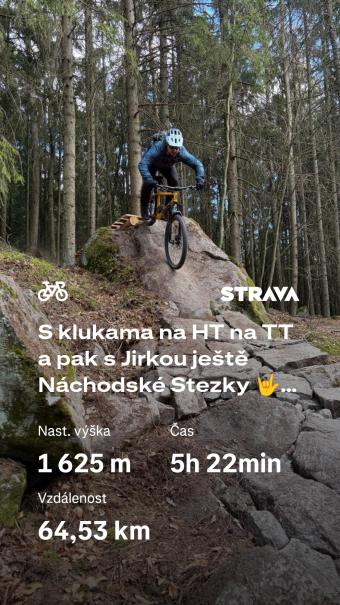 Ráno s klukama autem směr TT, tentokrát na HT s úmyslem dát nějaký ty lehký traily, nakonec Koza, Modřín, Boulder, Perník a pak bez kluků který odjeli dom s Jirkou ještě pěknej hec Ptačí perspektivu na HT. To byla topka, adrenalin stříkal :)