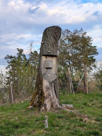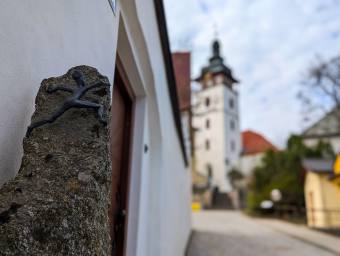 Jistebnický lezec. Snadno přehlédnutelný ale šel jsem tudy v prosinci a to měl červenobílou šálu a kulicha. Napravo a kousek zpět stával dům rodiny Katzů a o kousek dál,v místě kde dnes stojí penzión U Rezků ,stával dům kde se narodil zakladatel husitského Tábora Hromádka.