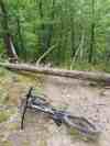 Výjezd nahoru kolem Praskavice taky cajk, navazující Utahovák udržuju furt. Na jinou stranu od Bílovic, směrem k Arboretu, pro změnu špatný zprávy – trojúhelník lesa, kde byly v poslední době už moc neudržovaný trailíky „Šemíček“, zachvátili lesáci se svojí prořezávkou a v korytu na červené TZ pod fotovoltaikou, kde to láká k vyšší rychlosti, leží kmen v ne úplně malé výšce jako stopka pro většinu smrtelníků.