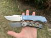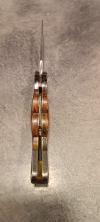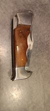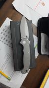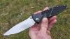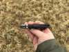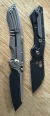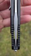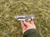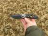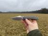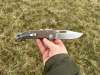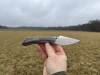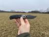 AD20.5 je kudla, kterou navrhl Andrew Demko známý hlavně spoluprácí s Cold Steelem a jako autor jedné z nejlepších pojistek na zavírácích tri ad locku. AD20.5 ale má Shark lock a je to největší highlight té kudly. Pojistka je pevná, obouruká a velmi zábavná. Kudla se dá díky díře a oboustrannému kolíku otevřít nespočtem způsobů (klasický thumb flick, reverse flick, whist flick s povolením pojistky i bez…). Pojistka zapadá absolutně spolehlivě s uspokojivým kovovým cvaknutím a drží jako skála, absolutně bez vůle v kterémkoli směru. Kudla má obecně super chod díky ložiskům a jen tak si s ní hrát a vymýšlet další způsoby otvírání je prostě radost. Dál bych vyzdvihl ergonomii, do mojí ruky sedí jako ulitá, a to i přes absolutně ploché střenky s tloušťkou 10 mm. Klip je funkční, oboustranný, tip up only, ale moc pěkný není. Kudla má ocelové odlehčené příložky a plastové střenky s moc fajn diamond paternem, který dává tak akorát gripu a na luxusní titanové verzi je navíc fakt sexy. Rozumná velikost (8 cm čepel, 19.3 cm celkem), plochost i váha (99 gramů) z toho dělá fajn EDC. Výhrady mám k poměrně krátkému ostří (vzhledem k velikosti ve složeném stavu) a k výbrusu, který je nad fazetou nesmyslně tlustý (0.8 – 1 mm u spičky). Plochý výbrus do 2/3 výšky čepele (byť s rozumnou tloušťkou 3.2 mm) z toho pak dělá spíše robustní, než dobře řezající nůž. Kudla je vyrobená na Taiwanu a zpracování nelze nic moc vytknout, nicméně použitá D2 se mi zdála při broušení i následném používání velice měkká (býval bych se vsadil, že je to AUS10-A). Pokud bych si tuhle kudlu kupoval sám, sáhl bych po verzi s G10kou a S35VN, kterou má knifestock.cz za nějakých 5t, což je fajn cena, když si uvědomím, že tahle plastová s D2 nebo AUS10 stojí od 3 do 4 t. Dál jsou v nabídce moc pěkně titanové kousky s čepelí ze 3V, případně i full timascová verze za nějakých 16t. Takže si vybere opravdu každý, a to je fajn. Ještě je k dispozici sheepfoot čepel, ale ta se mi osobně na téhle kudle vůbec nelíbí, použitý clip point kudle sluší mnohem víc. Takže za mě celkem fajn kudla. Hodně by mě lákala plnotučná verze 20S (čepel 92 mm, 154 g, 20CV, US made), ale tam už cena leze hodně přes 10t, a tak moc ho zase nechci :-).
