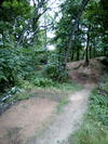 to vypadá hezky, někdo zvyšuje level trailů:), na prudším trailu do údolí kony zase nastrkané klacky a místy se vedle vyjíždí další stopa