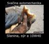Potká moucha mouchu a jedna má plnou hubu. Ta druhá se jí ptá „Co to žereš?“ „Oříšky“ říká první. „Aha, aha, a dáš mi?“ Ptá se ta s tou prázdnou tlamou. „Nas.rat, nedám, ale za rohem je jich plné hovno!“