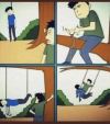 Ve filmech vždycky visícího člověka vytáhne jen jeden borec, mnohdy i jednou rukou. Proč ho tady tahali 3? =)