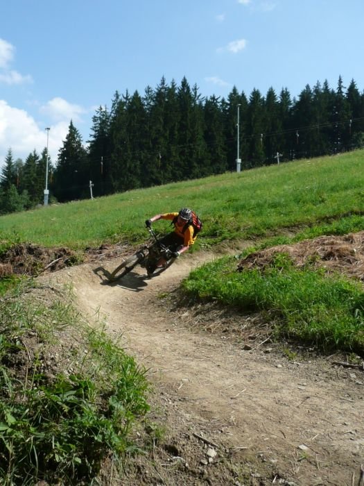 Přesně. Nevím jak bych musel jet abych doskočil některé skoky na té červené. Ale prej se má trochu překopat…