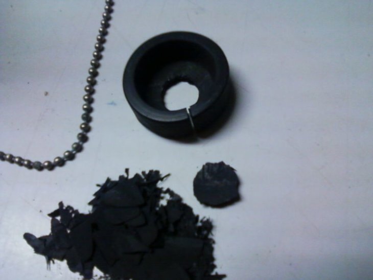 …vložku vyrobit. Napadl mě ten špunt, 1,5 palce má spodní šířku o 1mm menší než vnitřní šířka pouzdra tlumiče, vzal jsem lámací nůž a zpyžlal toto
