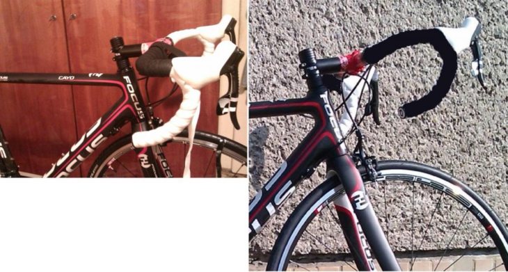 Kdybych nebyl prase, tak si vlevo dam celou bilou omotavku a gumu na pace a v pravo totez v cerny. Jelikoz mi ale bila vydrzi tak dve vyjizdky…