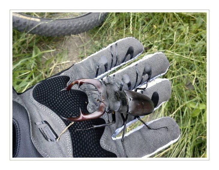 Jel jsem prudší stoupání po žluté z Koryčan po takové úzké pěšině a cosi jsem uviděl většího v trávě. Původně jsem, že je to hovno, tak jsem hodil myšku, abych to nepřejel a pak jsem zjistil, že je to Roháč :)