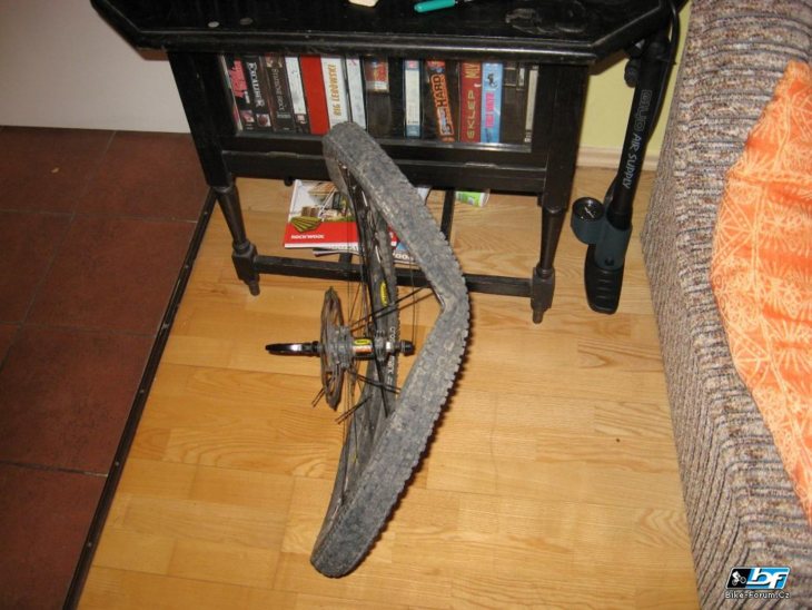 To chce jenom mírně dotáhnout niple na straně u náboje a bude jako nový… :D