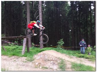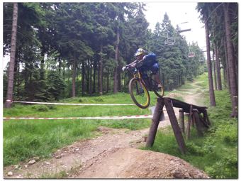 puka: Já to znam z bikeparku, dycky si na to přibržďuju, páč je to úzký a krátký, proto by podle mě v závodě i mohlo bejt rychlejší vzít to vedle, pokud tam nebyla vymlíkovaná nějaká trestná objížďka, ale zajímá mě info od někoho, kdo to jel.
