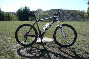 Současný stav po výměně prasklého rámu Grand Canyon AL8 za karbonový (ale původní Al už nebyl, viz můj exCanyon). Dále proběhla výměna představce a řidítek. V plánu na výměnu jsou brzdy za Shimano XT. Je to můj první pořádný bajk, který nyní slouží jako alternativa ke Canyonu Spectral na takové to protočení nohou po cyklostezce či šotolince :)