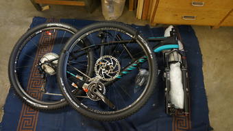 Tak jsem po doladění doplnil foto. dal jsem pedály XT, hezky ladí a kolo trochu zprznil parohama a trojkombinací – polní kuchyně/servisní centrum/brzdící padák – ta potvora 29tka sama zrychluje i do kopce a z kopce hořej i XT IceTech brzdy, tak střílím padák :-)