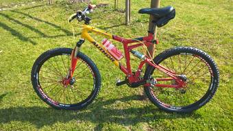 Story(jak to vlastně vzniklo): Na aukru se válel celkem levný rám a neměl kupce. Tak jsem ho vzal, že z něho něco postavím. Jenže pak jsem propadl kouzlu 29er a tento rám mi zůstal v dílně pod prachem. Když jsem se nedávno oženil, manželka chtěla nějaké kolo – nejlépe odpružené. Nebylo těch peněz tak jsem prohrabal a … hned se zamilovala a pak už se jen něco vylepšovalo (deore za XT, alexrims za VIKINGy…)