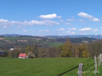 Včera byl úžasne čistý vzduch,tak bylo vidět až na hřebeny stále zasněžených Krkonoš.