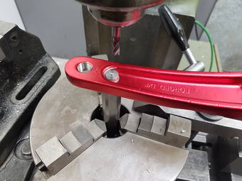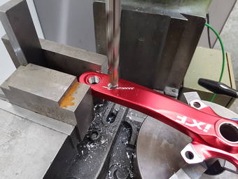 Kutile, princip jsi pochopil, jen nepovoluji sklíčidlo, otáčím to na díře pro pedál a ano, kliku držím v ruce. Beru to po 2,5 mm a pak šlicht na plnou výšku profilu, špony po 0,1mm.