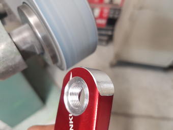Zkracování klik na zakázku. Práci trošku komplikovala integrovaná osa a červený elox, ale nakonec se celkem povedlo.
