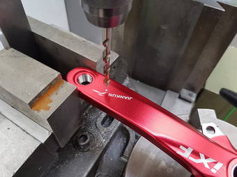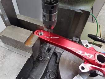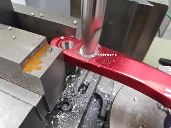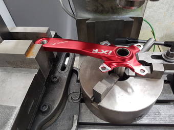 Jak dlouho to trvalo? Protože nevím, kde mají kluci obráběči různé věci, tak jsem chvilinkama hledal nějaké drobnosti, tak s kávou a hledáním něčeho na přípraveček tak hoďku a 3/4. A ještě mě zpomaluje to focení. Kdybych měl vše po ruce, tak hoďku úplně v klidu. Člověk to nemůže valit, protože je tam ten červený elox a na něm by šel každý škrábanec vidět.