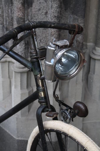 Jo tak tohle je parada! Mezivalecne kolo, kliky na 4 hran, uzamykani hlavoveho, falcaky… Meli jsme doma par takovych kol a dokonce i ten zvonek a karbidku. S tou jsem si tak dlouho hral, az jsem rozflakal lupu :-( Vsechno pak slo do kopru pri zaplavach v 97', skoda prevelika. Posledni takove funkcni zrestaurovane kolo kdosi ukradl.