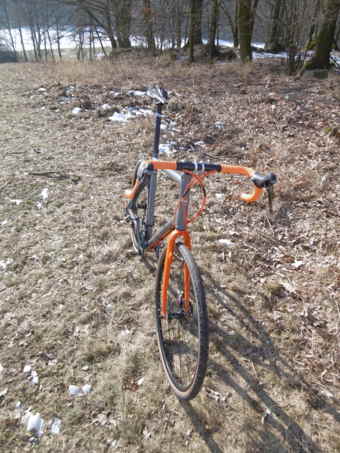 Hodně dlouho uvažuju o tomto rámu v 640mm, takže díky za reálný kousek. Rozhodně není jednoduché při těchto žirafoidních parametrech takové kolo vybrat (já mám 197cm a rozkrok jen 96cm, a rozpětí 203cm) a 64cm je na BF rarita – máš u mě 5*. I když bych třeba bowdeny a omotávku dal „jen“ černou. A doufám že bude i popis jak se ti jezdí a jak se chová rám pod tou náloží.