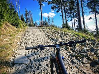 pěkně odstupňované, asfalt silničky, pak urovnané šutry gravel a hned vedle poházené šutry XC