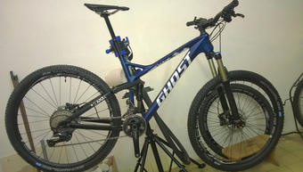 Kolo je SL AMR LC 4 na 130 + 130 mm zdvizích, původní osazení téměř jako LC 6, které je celé na XT, vč. sedlovky KS Kind Shock LEV Integra 392/125 mm, ø 31,6 mm s vnitřním vedením, narozdíl od Kind Shock Cruxi 31,6 mm, zdvih 100 mm, a které ale černé manželka nechtěla, až na kliky – ty jsou FC-M700, a brzdy – ty jsou BR-M615, kde závlačky jsem nahradil šrouby, stačilo vyříznout závit.