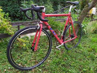 Po několika málo letech ježdění po lese jsem dostal chuť na trochu té silniční cyklistiky, tak jsem si postavil tento stroj. V té době jsem chtěl od RB celopéro, ale nějak nebyly k sehnání, tak musela stačit silnička. Koupil jsem rámovou sadu, místního velkoobchodníka několik týdnů uháněl o sadu Campy a většinu dalších věcí (za což mu děkuji) a začal poznávat kvalitu nejen asfaltu na okreskách. Během asi tří let jsme najezdili pár tisíc kilometrů, ale už dlouho slouží hlavně jako dekorace. Letos má najeto okolo 20km, na silnicích mi to dnes přijde moc nebezpečný a ta chuť mě už přešla…