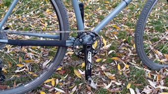 Za skoro čtyři roky se kolo dost změnilo, proto ho sem dávám znovu. Je to zimák/měšťák a je stavěné na cenu a výdrž. V zimě s ním jezdím i delší trasy. Při pravidelné údržbě po 2 letech služby, jsem kolo rozebral a nechal mu udělat nový lak. Barva ocelová šedá, vidlice černá. Také jsem v rámci plánovaného upgradu přešel ze systému 1×7 na 1×9 s menším převodníkem 40T oproti původnímu 42T. Ostatní díly se měnily v průběhu času.