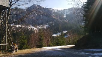 Snih zatim drzi, nejhorsi jsou popadany stromy jeste z ledna. Trasa Gmunden – Schrattenau – Laudachsee – Grünberg – sjezd Mülibankerl Wanderweg – Gmunden.