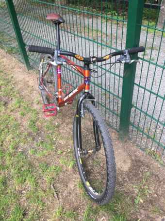 Uvažuju, že mu vyzkouším Konu Project 2 440mm – marně už rok sháním CrMo Koní rám z devadesátek, tak když bude doma vidla, tak snad odněkud přiběhne i ten rám :)).