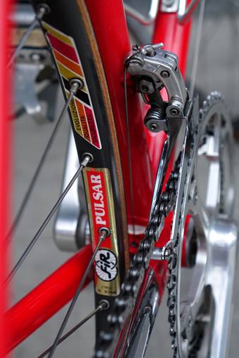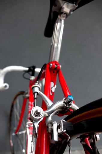 Moc moc moc krásný. Jen při fotce zezadu máš levý brzdový špalík výš. Zajimavý je, jak málo se Campa změnila od sady Nuovo Record, v porovnání s dneškem, kdy vývoj letí stále rychleji. A ty bazmeky u brzdových špalků byly (tuším) kvůli přidržení při jejich nastavování a při výměně kola pro jeho navedení na prostředek. V odpovědi pro Lucase jsi spíše uvedl páčku otevírání čelisti.