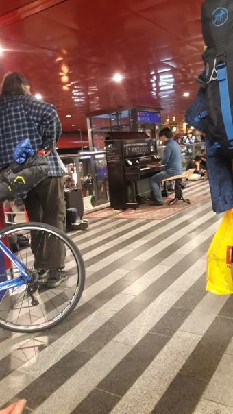 Kultura na hlavním nádraží v Praze. Ten kluk hrál fakt super. Klasiku i novodobé skladby.