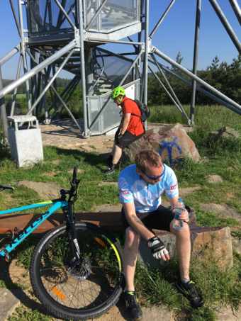 Nejlepší je ta fotka od rozhledny, doufám, že oba kamarádi ještě někdy na kolo sednou, vypadají, že právě vypustili duši… :-D
