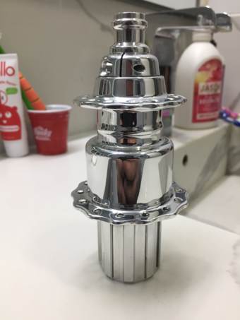 Když leštit náboj – tak bez ořechu a ložisek, rozebraný, pak umýt benzínem a pak kotoučem bez brusné pasty poleštit, namazat a sestavit. Po čase stejně ten lesk chytí patinu.
