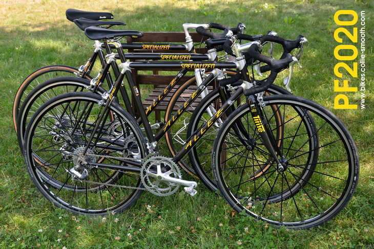 Dobře Ty! Já mám „jenom“ tři silniční kola, starej ocelák, co naštěstí nikdo nešlohne ani zamčený jenom za jedno kolo a rám, ten festovní zámek něco váží, že jo… pak hliníkáče na CX co ale funguje i jako dvojka na silnici s kolama z jednice kdyby se chtělo, a zimák s blatníkama až na zem, a pak jednici z karbónu, ale musel jsem kompromisy, protože divná geometrie (blbej poměr nohy/a od pasu nahoru), takže Spešl a navíc „prej“ na Roubaix a starší model. Ale to jsem se omezil, že víc ne… a každý je jiný i když trvám na kompatibilitě kol a kazet. Na tohle nemám…