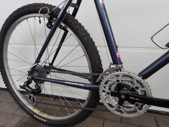 Další z rodiny mých prasátek. Tentokrát (podobně jako Hanys kurýr), představím prase modelové řady CPX 4050, na rámu z cr-mo oceli dvakrát zeslabované. Druhý nejvyšší model od CPX v nabídce oceli. Tradičně skvělé zpracování, bezvadné sváry v TIGu, vedení lanek, gravírované nápisy v mufnách… Prostě klasika od tehdejších CPX. Tak snad se bude líbit. Model z roku 1997 je v tmavěmodré metalíze, na kompletní LX sadě. Vidle Manitou X Vert není origo z na kole. Je novější z r. 98.