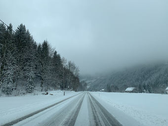 Cesto z Pražma. Foceno z auta.
