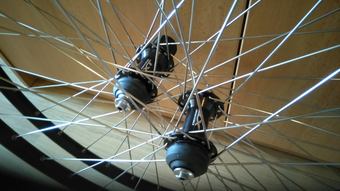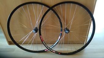 Stará kola to měla za sebou. Tyhle ráfky jsou širší (23 uvnitř), na plášť 2,35 to bude lepší. Náboje XT 8000, ráfky DT Swiss 533d, dráty Sapim Leader. Dobrý je, že dráty na obou kolech jsou stejně dlouhý.