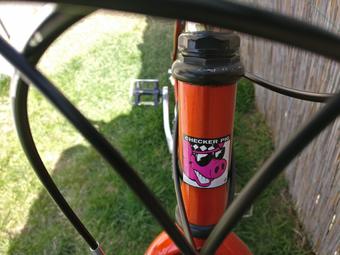 Na kole je prakticky všechno signováno Checker Pig. Kolo bylo kompletní, i když dost zanedbané – zatuhlé, špinavé, orezlé.