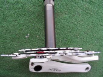 Všechno se jednou ojede, tak jsem koupil nový Gebhardty s na zakázku udělaným převodníkem 30T. Původně měla ta 30tka závity, ale trochu se nepovedla rozteč, tak jsem převrtal na 8mm díry a dal šrouby skrz. Taky jsem ho otočil (doufám, že to bude pak alespoň trochu nahazovat), aby mi neškrtal řetěz o příruby a abych je nemusel pak odbrušovat. Jelikož se mi tím posunul o cca 2mm ke středu, hodil jsem pod velkej 2mm podložky abych mezi nima zachoval rozteč. Tím se mi posunula řetězová linka ke tředu, což jsem docela uvítal. Trochu jsem si pohrál s převodníkovejma šroubama a podložkama na míru aby to šlo správně sešroubovat. Kliky jsou po letech docela v kondici, trochu se přeleštily a jedeme dál. S XTR kazetama 11/34 to už nějak doklepem.
