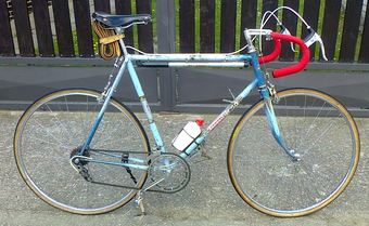 Tak jsem ho trochu poladil a chce to už jen malé drobnosti a seřídit. Ponecháno záměrně v pěkné patině (shánět tyto díly, aby to ladilo je o nervy) , přechodně normální ráfky a galuskové schovány. Na svou dobu (1966) pěkná, ještě poctivě dělaná silnička, pouze z domácích komponentů.